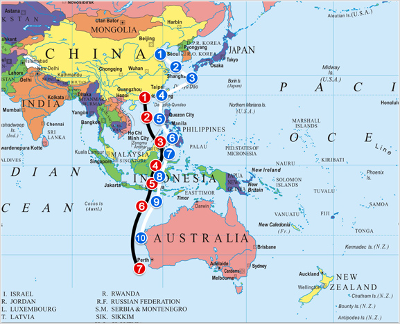 | 6 | Sulu Sea | 7 | Sulawesi Sea | 8 | Sek Makassar Strait | 9 | Indian Ocean | 10 | Australia Western Coast |
