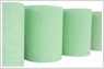 This scrap foam is broken down (chipped) into small pieces then mixed in an adhesive solution to start the rebonding process. The foam mix is then fed into a large cylinder and compressed at temperature to create the required weight and density. The more material that is fed into the cylinder the greater the density of the final product.